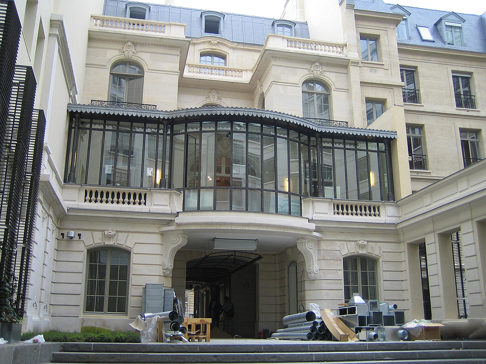 Raum + Konzept: Das Bankhaus Rothschild hat sich das im Herzen von Paris gelegene Stadthausensemble (ca. 1850) als neuen Haupt- und Verwaltungssitz ausgesucht. Um den geforderten Funktionsabläufen, dem Anspruch an Design und Innenausstattung sowie den Technik- und Sicherheitsbestimmungen gerecht zu werden, wurden umfassende Umbau- und Modernisierungsmaßnahmen durchgeführt. Die schon vorhandenen Büro- und Konferenzräume blieben erhalten. Es wurde zusätzlich eine unternehmensinterne Kantine mit High-Tech-Küche sowie 4-Sterne-Koch und dazugehörigen restaurantähnlichen Essbereichen für die Unternehmenspartner eingerichtet. Die Räume des anderen Gebäudes wurden soweit verändert, dass sie für den Bankverkehr der Privatkunden geeignet sind. Die jeweils oberen Etagen der beiden Gebäude sind nicht für den Kundenverkehr vorgesehen. Die Büroräume der Verwaltung und des eigentlichen Bankwesens sind nebenan in einem ebenfalls modernisierten Bürogebäude untergebracht.
