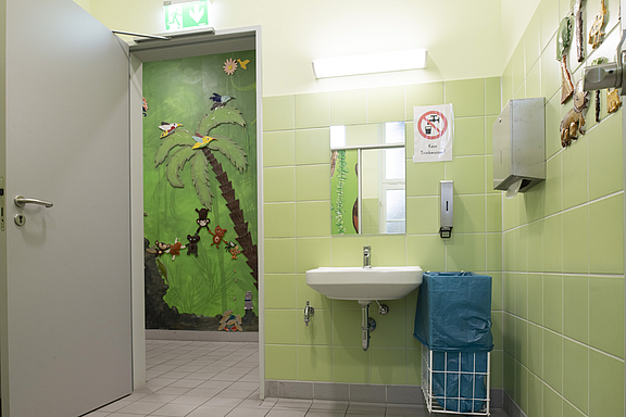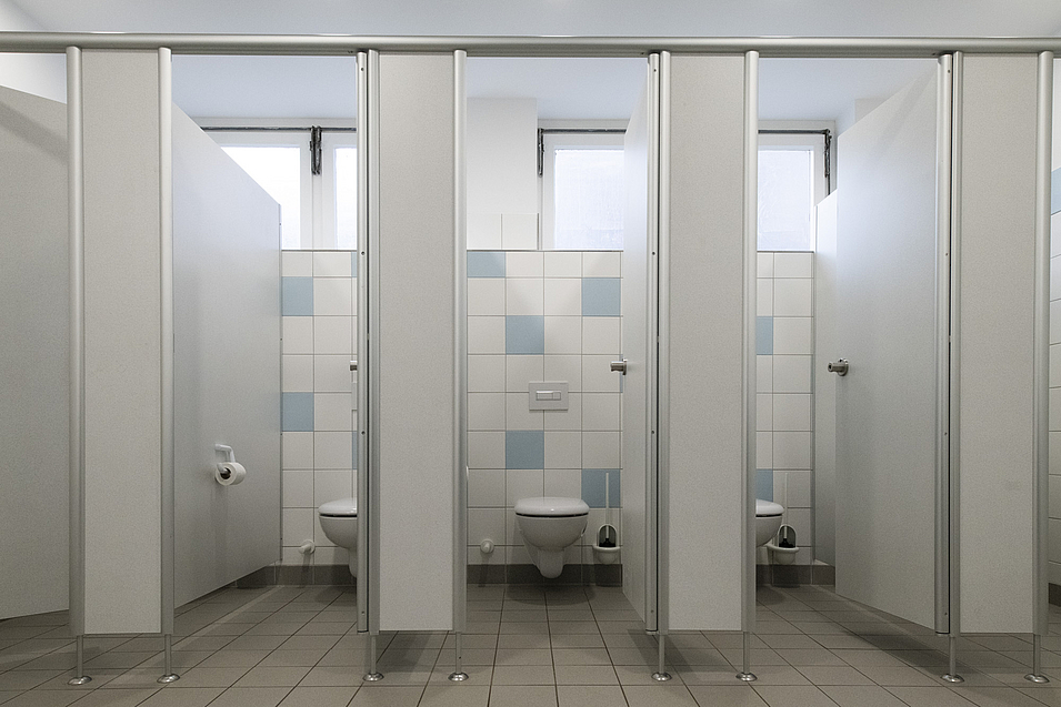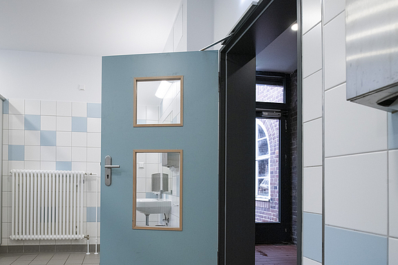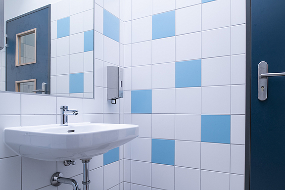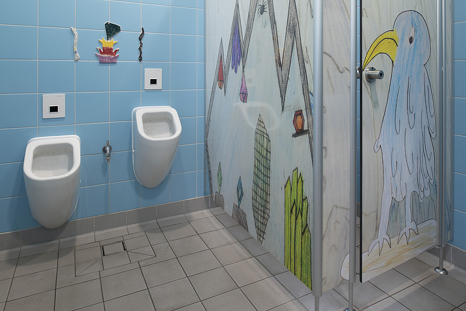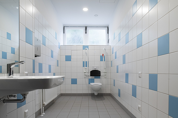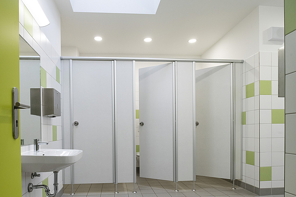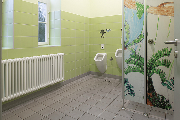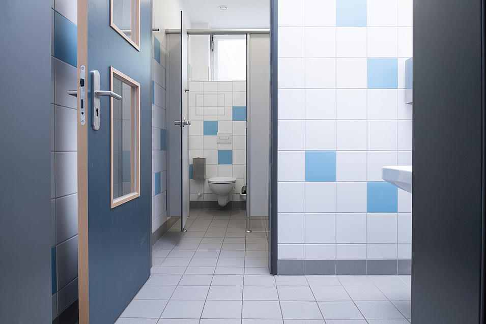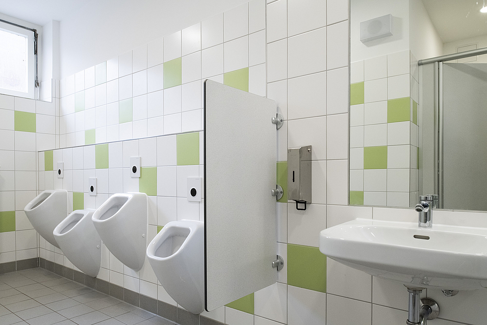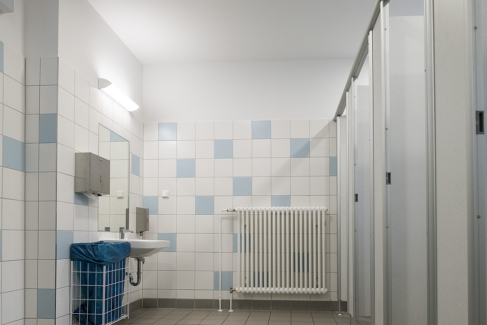 2.BA: Die Sanitäranlagen im Schulhof- und Sporthallenbereich wurden ebenfalls kernsaniert und modernisiert.