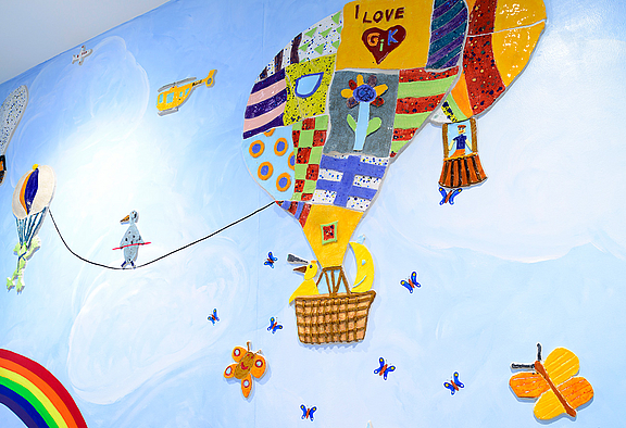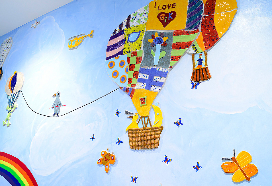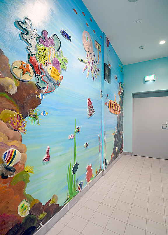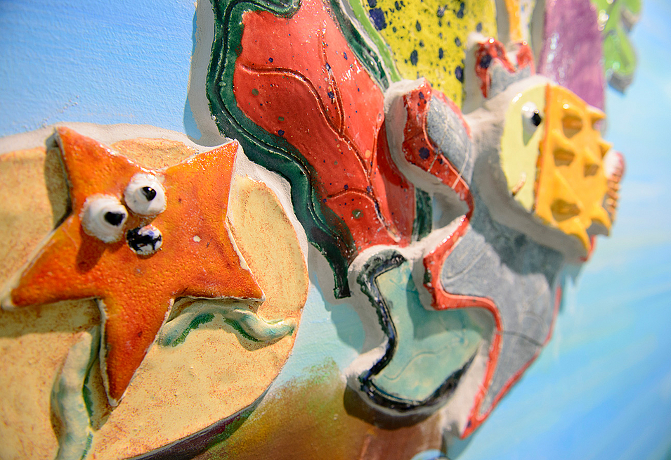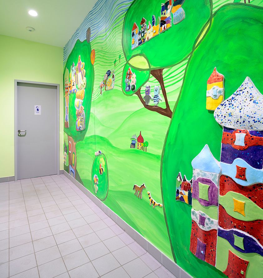 Einhergehend mit der Modernisierung konnte ein von der öffentlichen Hand unterstütztes Keramico-Schulprojekt in Zusammenarbeit mit den Künstlern Burhan Uzunyayla und Yasemin Yilmaz und den Schülern der GS endlich realisiert werden. In den drei verschiedenen Geschossen wurden die Haupt-Raumfarben und die Oberflächengestaltung nach den Themen "Wasser", "Natur" und "Himmel" ausgesucht. Es ist ein besonders farbenfrohes und liebevoll gestaltetes Werk entstanden.