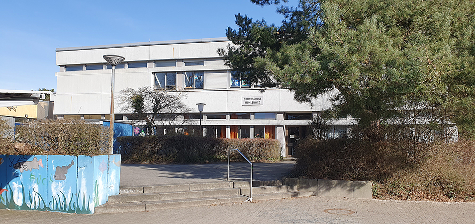 Die Grundschule Mühlenweg wurde 1971 erbaut. Die GS arbeitet mit einem Schulkonzept für Inklusive Kultur mit Schwerpunkt auf Kommunikation und Beratungsstrukturen. Momentan besuchen ca. 420 Schüler*innen die GS Mühlenweg. Das Kollegium besteht aus ca. 70 Lehrerinnen und 10 Lehrern. Sie ist die vierte von fünf Schulen, für welche e3architekten im Rahmen des Sanierungsprogramms beauftragt wurde.