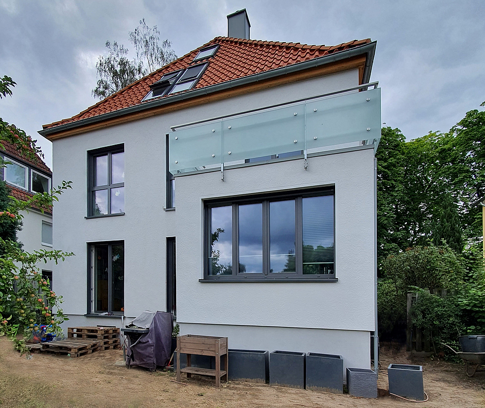 Die Herausforderung bei diesem Zweifamilienwohnhaus in Hannover bestand darin, ein energetisch modernisiertes Gebäude gemäß dem KfW-Effizienzhaus-Standard 85 zu erreichen und gleichzeitig das Erscheinungsbild zeitgemäß zu bewahren. e3architekten konnten bei diesem Projekt ihre Kompetenz im Umgang mit Bauten im Bestand überzeugend unter Beweis stellen.