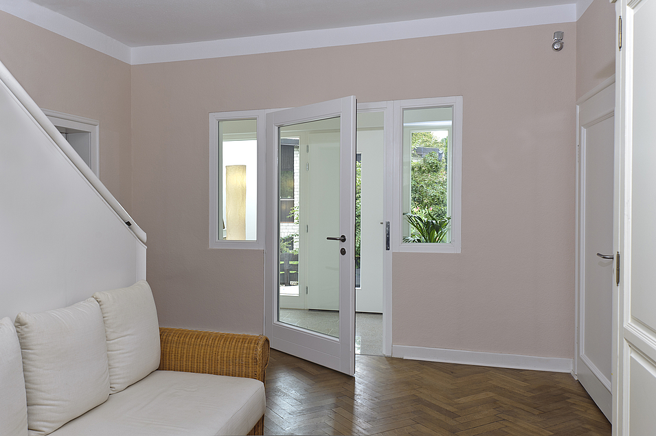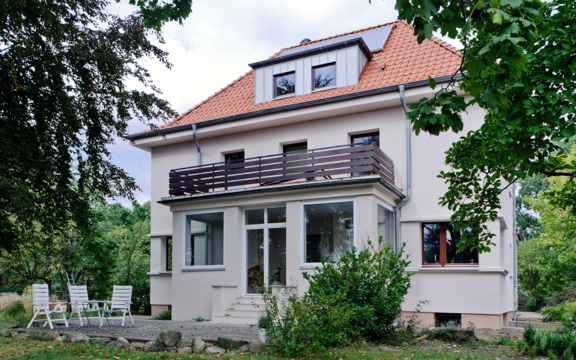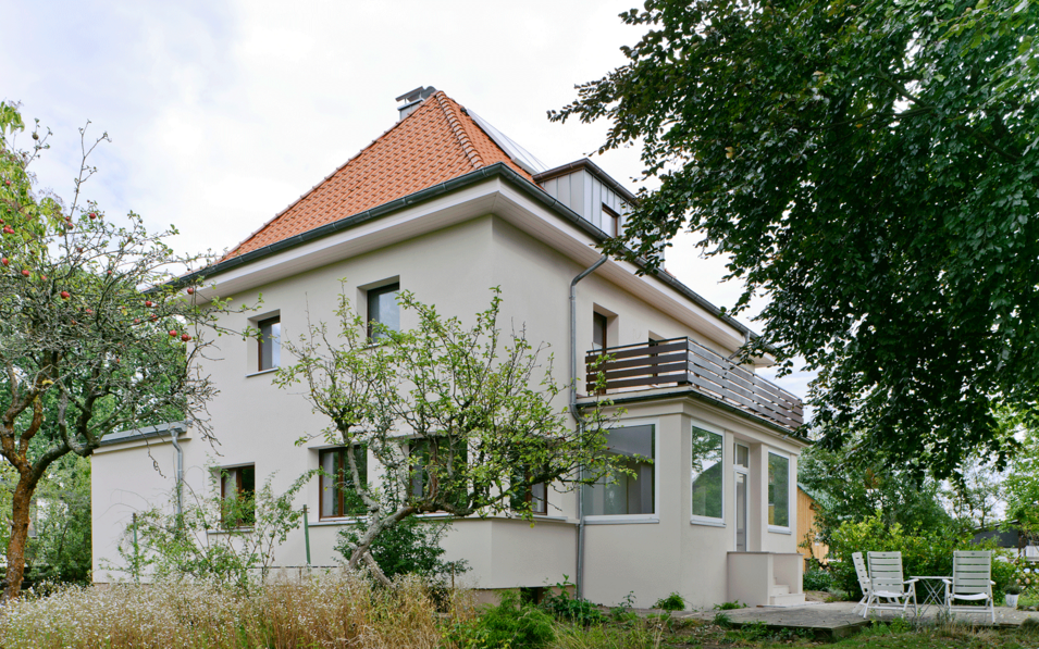 Die ehemalige Arztvilla und Praxis, Baujahr 1934, wurde für einen privaten Auftraggeber energetisch gemäß gültiger EnEV zu einem KfW 100-Haus modernisiert. Mit 280m² Wohnfläche liegt das Haus sehr idyllisch als Solitär auf einem großzügigen Grundstück im alten Dorfkern.
