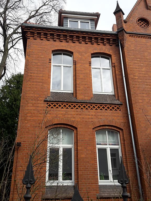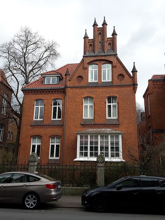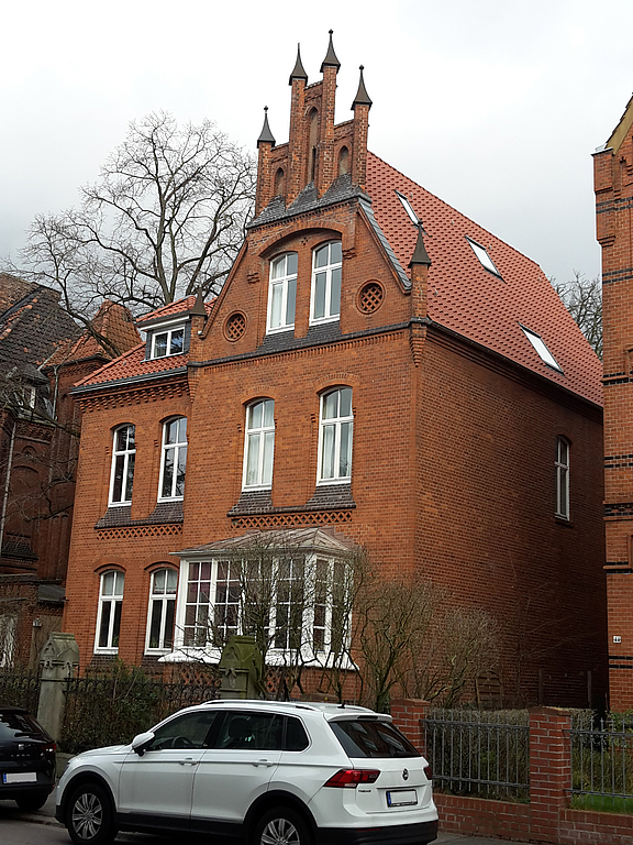 Die Stadtvilla gehört mit ihren Nachbarhäusern zu einem denkmalgeschützen Ensemble. Das Wohnhaus wurde vermutlich 1895 erbaut und gehört stilistisch zu den neogotischen Bauwerken.