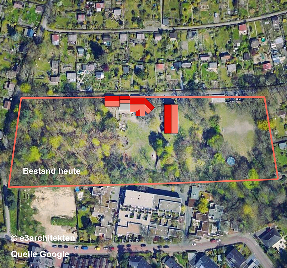 e3architekten haben nach Freigabe von öffentlichen Fördergeldern im Programm “Klimaanpassung in sozialen Einrichtungen” des Bundesumweltministeriums (BMUV) den Auftrag erhalten, Lösungsmöglichkeiten zur Verbesserung der Nutzung in und an den Häusern zu erarbeiten. Um diese Lösungsmöglichkeiten in allen Teilaspekten umfassend und fachgerecht zu konzeptionieren, wurden das Landschaftsplanungsbüro plateau LA und das Fachplanungsbüro IGFH hinzugezogen.