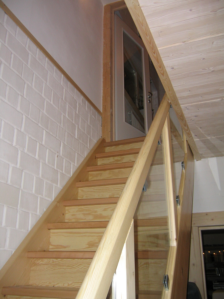 Raum: Wunsch der Auftraggeber war ein Gebäude, das den veränderlichen Wohnbedürfnissen einer Wohngemeinschaft angepasst werden kann. Es wurden zwei Eigentumswohnungen geschaffen. Das Gebäude funktioniert zuerst als Einheit für eine Familie mit drei Kindern: fünf gleich große Individualräume und eine großzügige Wohnküche (40m²), die Diele im OG dient vorerst als zusätzlicher Arbeitsplatz. Die Anschlüsse für eine zweite Küche sind bereits vorhanden. Später können durch das Verlegen der Erschließungstreppe nach außen zwei eigenständig funktionierende Einheiten hergestellt werden.