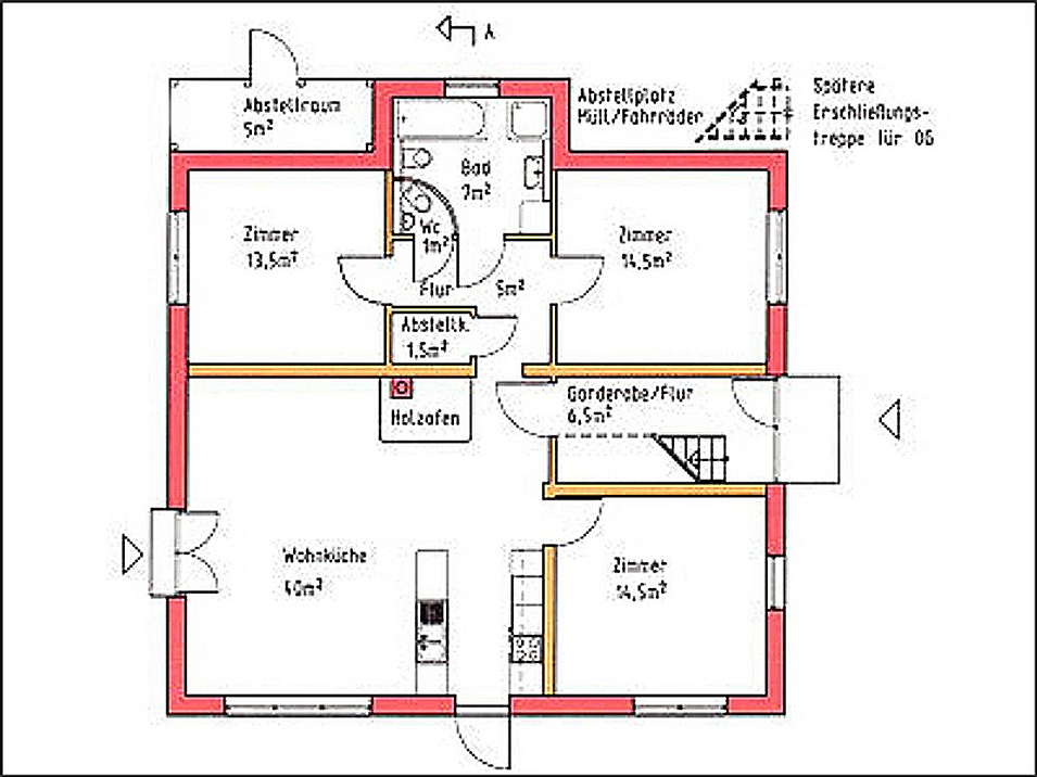 - Wohnfläche EG: ca. 100m², Wohnfläche OG: ca. 70m², BRI: 700m³, A/V: 0,69