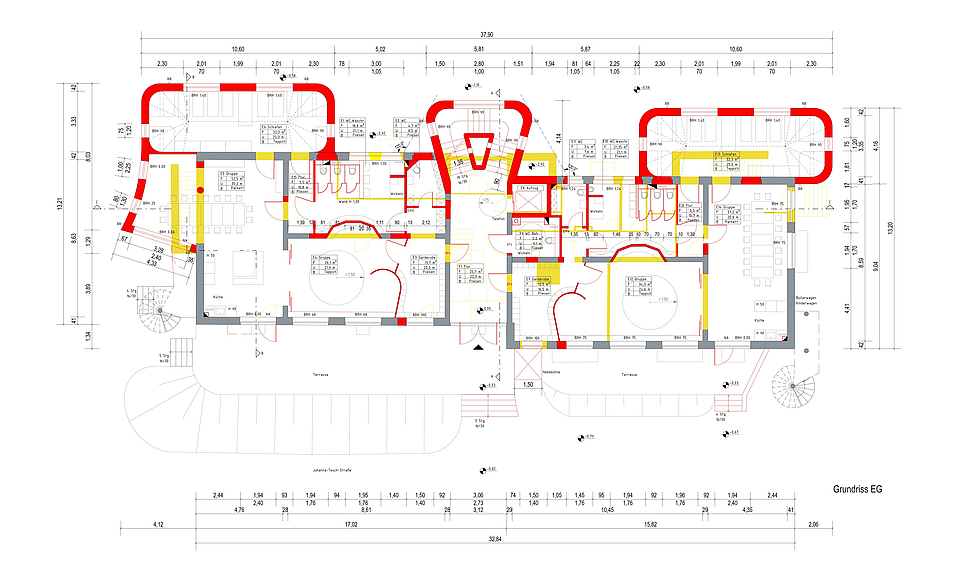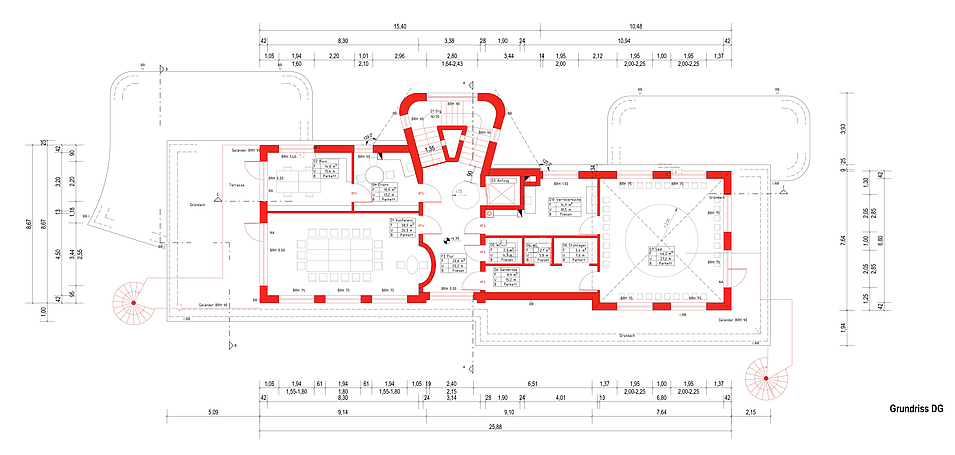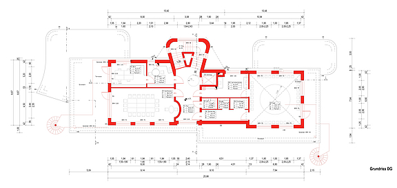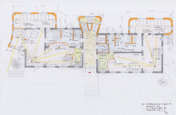 In den neuen Anbauten und im Staffelgeschoss (DG) sollen Wandflächenheizungen eingesetzt werden. Die Heizungsanlage wird komplett erneuert und mit PV-Anlagen ergänzt. Gemeinsam mit dem federführenden Planer und B.A.U.-Kollegen, Dipl.-Ing. Architekt Hartmut Scherer aus Berlin, haben wir die Planunterlagen erstellt und das Energiekonzept ausgearbeitet.